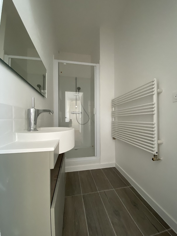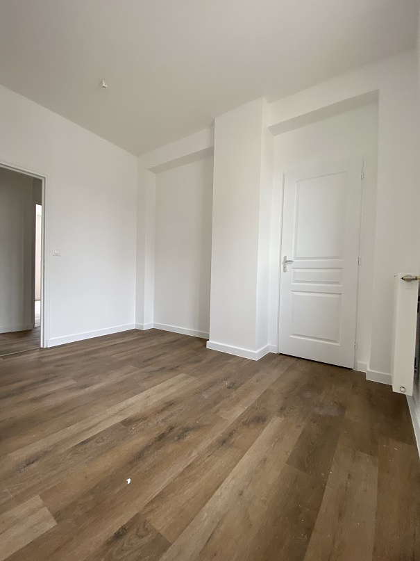 Situé en Centre-ville, Appartement 3 pièces de 58.13 m² au 1er Etage sans ascenseur, comprenant : Entrée, Séjour, Cuisine Aménagée et Semi-équipée (Hotte, Plaque), 2 Chambres avec Salle d’eau, Dégagement, WC.