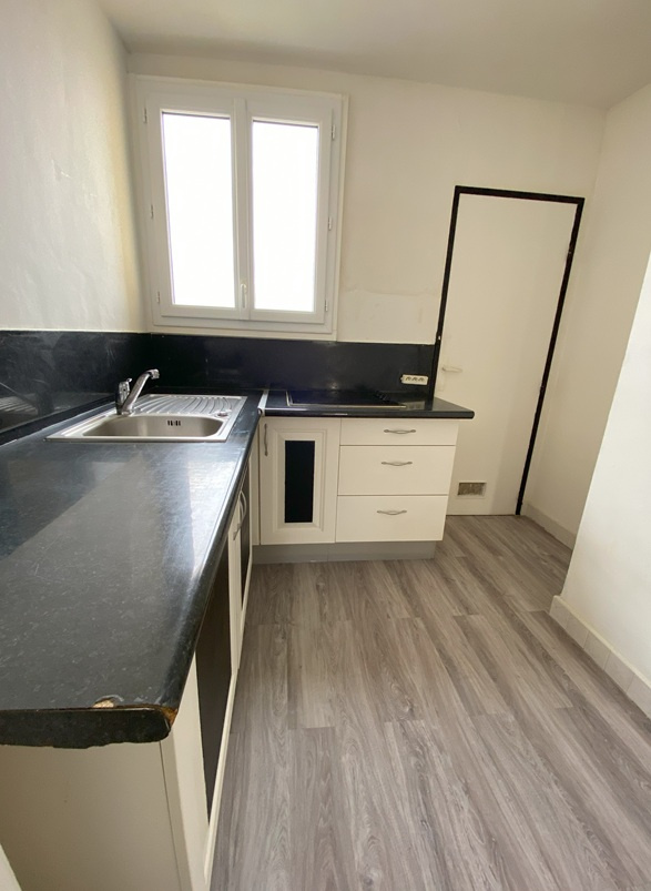 RESIDENCE LE MURGER, Appartement 2 pièces de 43.49 m² au 4e Etage avec Ascenseur, comprenant : Entrée, Séjour, Cuisine aménagée et équipée (plaque) avec cellier, une chambre, salle de Bains, WC, Balcon.