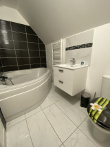 Etage : palier desservant deux chambres et une salle de bains avec WC.