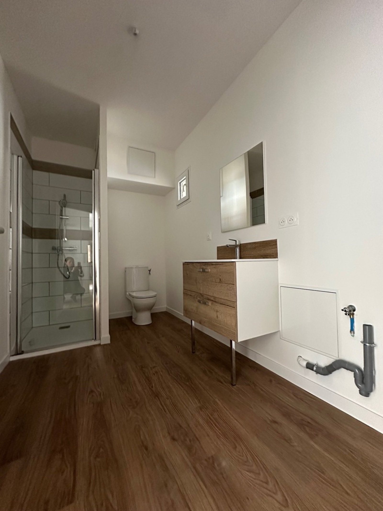 Un appartement 3 pièces de 69,80m² comprenant : Entrée, cuisine aménagée (Hotte + plaque) ouvert sur séjour, 2 chambres, salle d'eau avec WC.