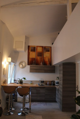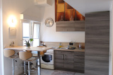 Cuisine AM EQ ouverte sur séjour / Une salle de bains avec WC / Chambre en mezzanine.
