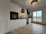 Entrée avec penderie, Cuisine aménagée et Équipée (Hotte, Plaque, Four) avec Balcon, Grand Salon-Séjour (32 m² avec terrasse de 8.66 m²), Chambre, Salle d'eau, WC.