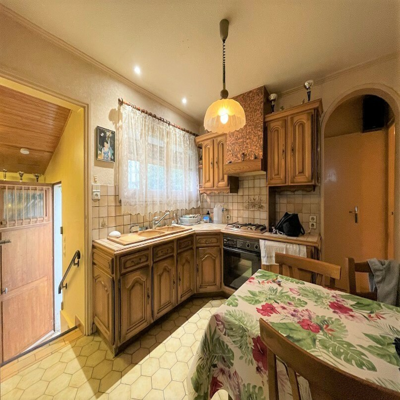 RDC : Entrée / Cuisine Aménagée et Equipée (hotte, plaque, four, petit réfrigérateur) / Séjour / 3 Chambres / Salle d'eau / WC.