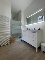 RDC : Entrée / Salon-séjour / Cuisine Aménagée et Équipée (plaque, four, lave-vaisselle) / Buanderie, Dressing / WC avec Lave mains.