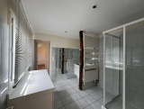 RDC : Entrée, grand double garage ( 55 m² ) avec chaufferie avec accès à une cour privative, chambre et dressing.