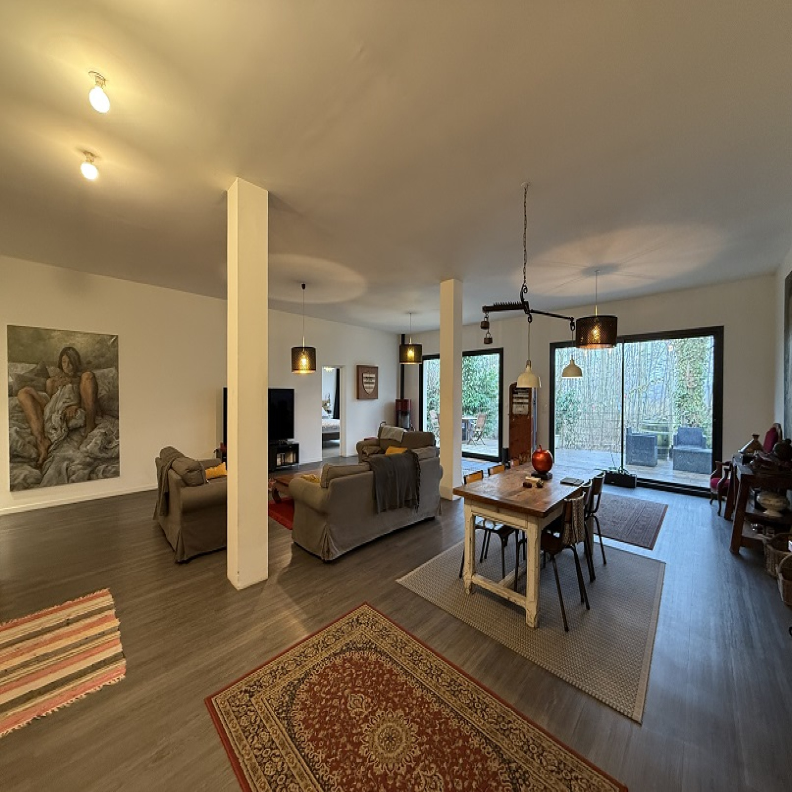 Une large baie vitrée ouvre sur une superbe terrasse de 63 m², véritable prolongement de la pièce de vie pour vos moments de détente et vos soirées d’été.