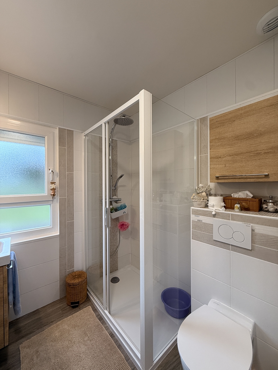À l’arrière de la maison, vous profiterez d’une jolie terrasse de 30 m², accompagnée d’une petite remise de 8 m², idéale pour le rangement.
