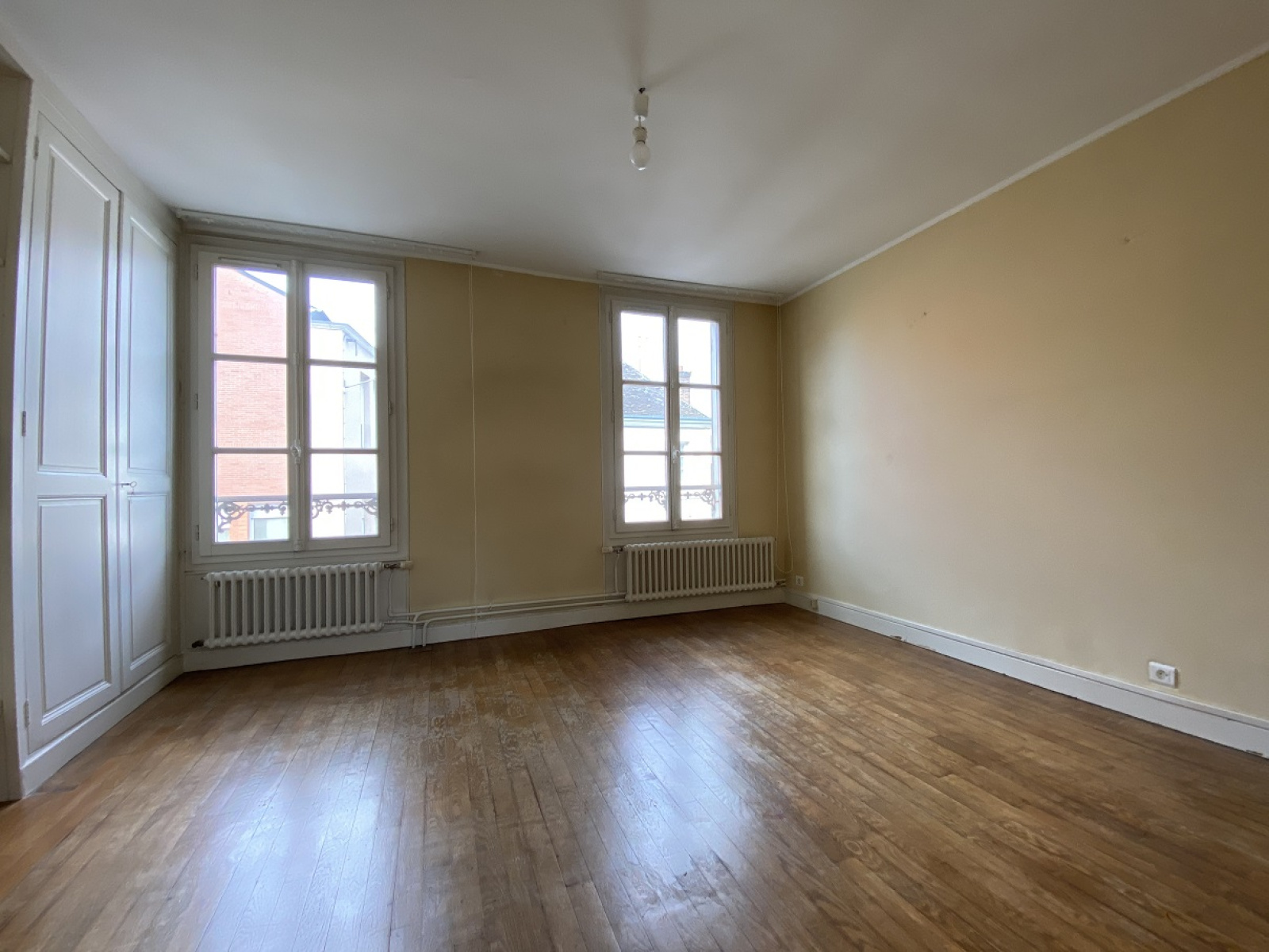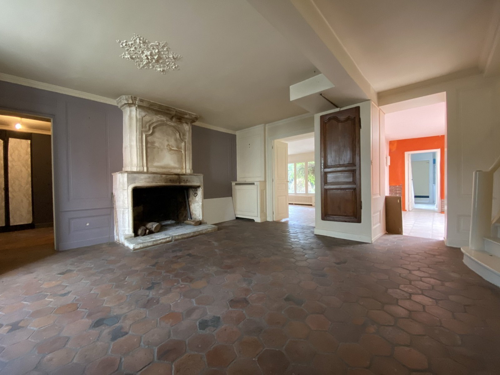 A l'étage : D'un côté 1 chambre avec placards. De l'autre côté, 2 chambres dont une grande avec un accès terrasse et vue sur le jardin.