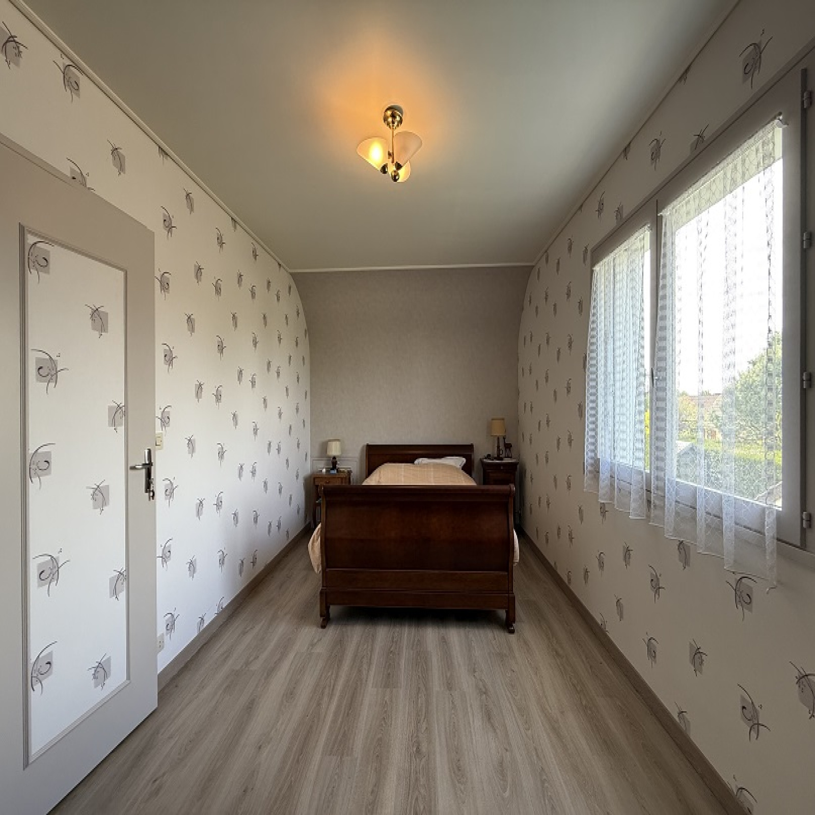 RDC : Entrée / Cuisine aménagée et équipée, Salon-séjour avec cheminée / 2 chambres avec grands placards / Salle de Bains et WC.