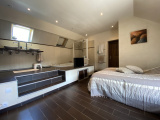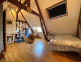 A l'extérieur, un studio avec mezzanine et kitchenette et attenant à la maison une grange de 57m² au sol (accès de la maison + cour-jardin)