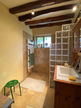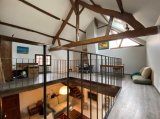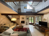 RDC : Grand séjour-salon (cheminée insert) Plafond cathédrale, salon avec cheminée, cuisine aménagée et équipée avec arr.cuisine, salle d'eau, chambre, WC.