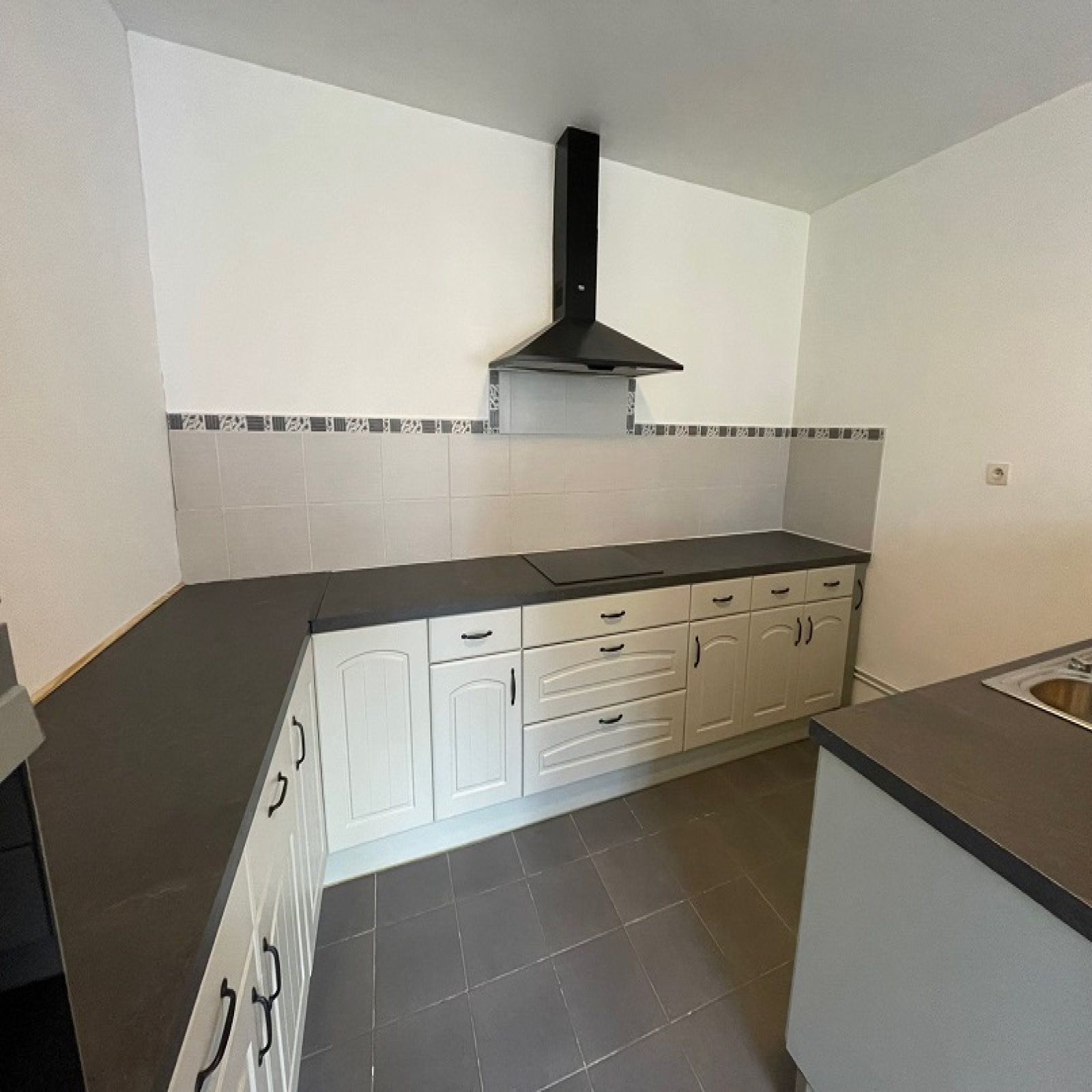 RDC : Séjour (Conduit cheminée existant) / Cuisine Aménagée et Équipée (hotte plaque four frigo) / Grande Salle de bains avec WC séparé et nombreux rangements.
