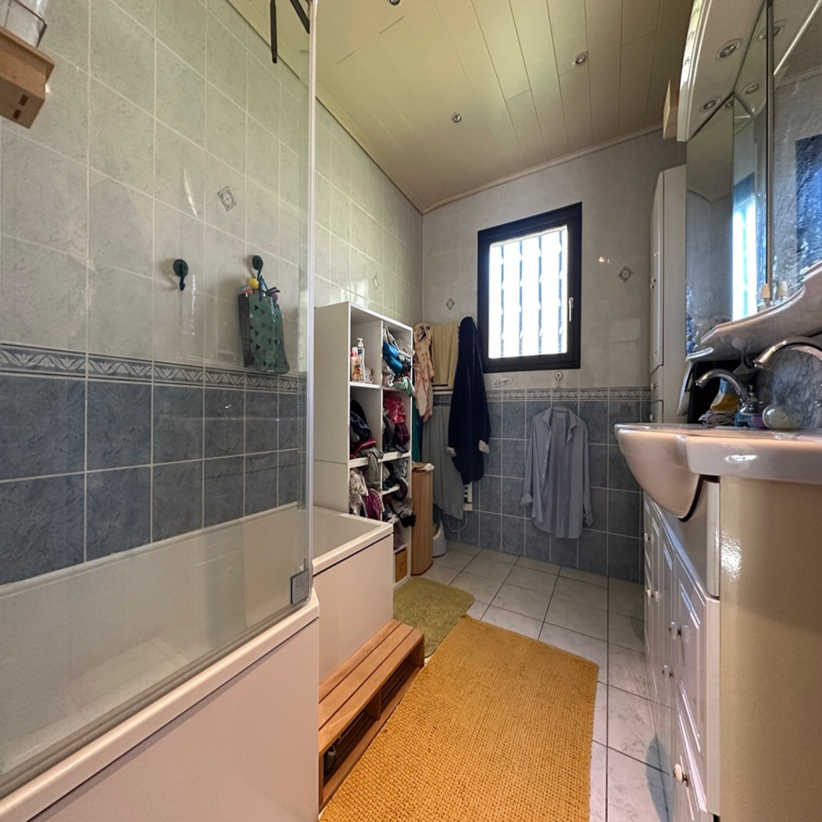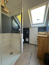 - RDC : Entrée / Beau salon-séjour ouvert sur cuisine aménagée et équipée / Une chambre / Salle de bains avec WC.