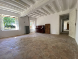 RDC : Grand séjour-salon (40 m², tomettes, poutres, cheminée), Cuisine (cheminée), 2 chambres, salle d'eau, wc.