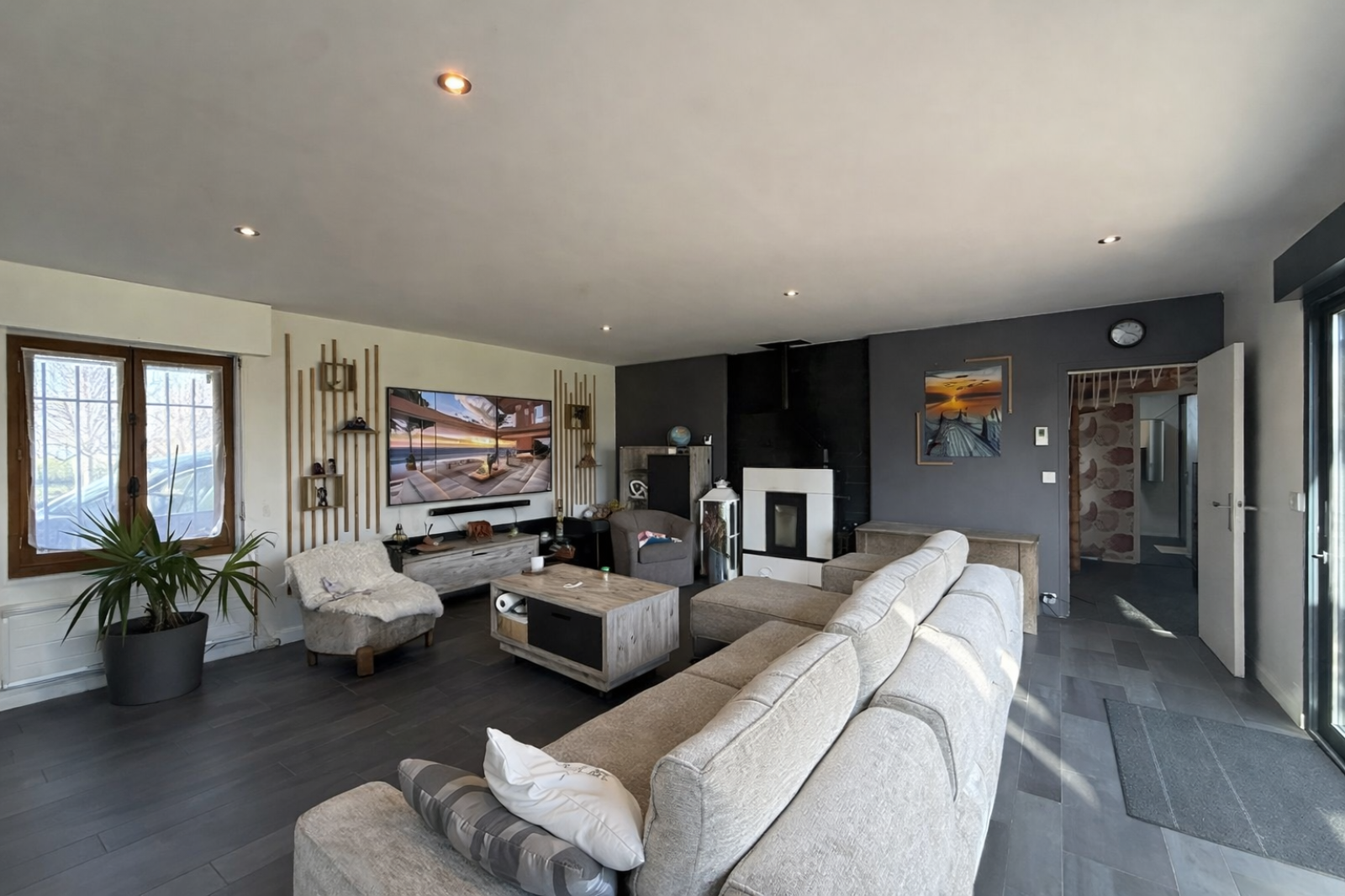 Vaste salon-séjour lumineux avec poêle à granulés récent