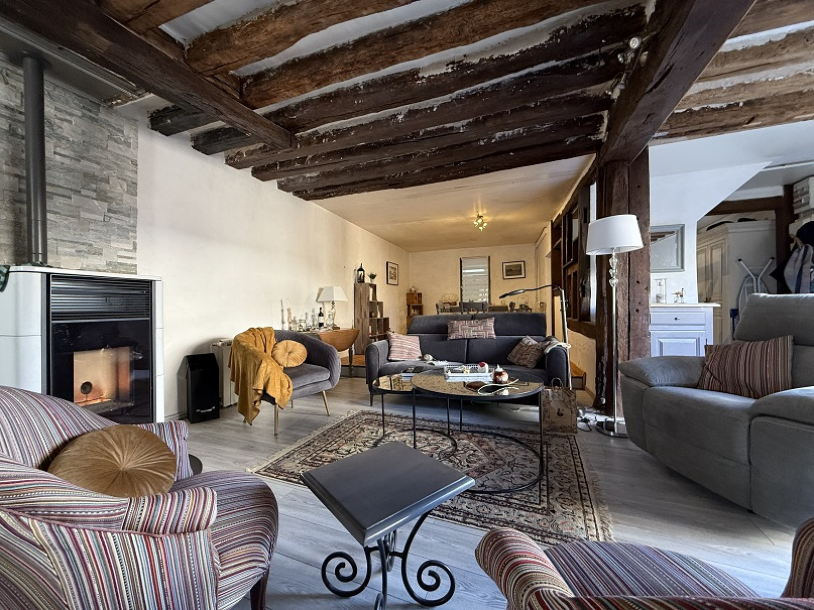 Au RDC : Salon (Poêle à granulés) donnant sur une cour fermée avec TERRASSE et PARKING, salle à manger, cuisine aménagée, WC.