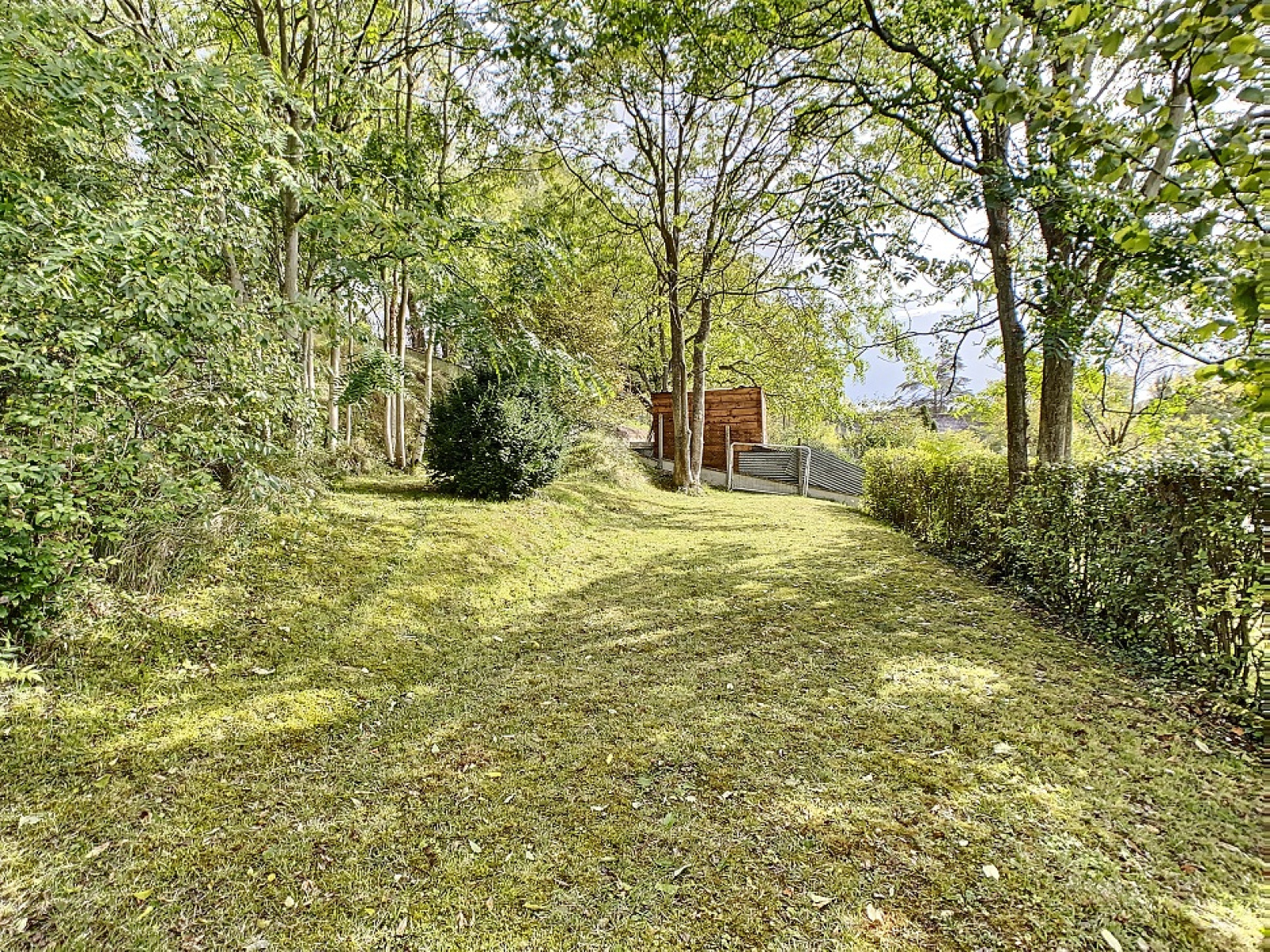Au RDC surélevé : Entrée avec placards, séjour-salon avec cheminée et balcon (vue imprenable), cuisine aménagée et équipée, bureau, wc.