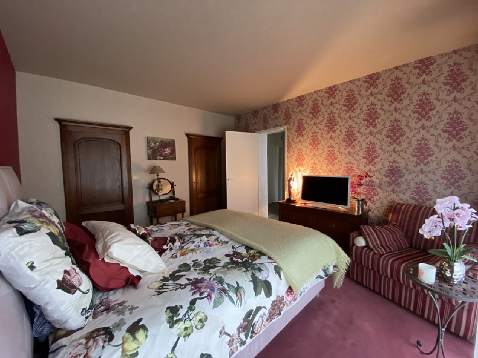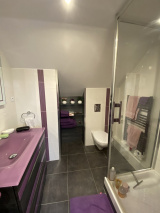 - RDC : Entrée / Salon-séjour (Cheminée Ethanol) / Cuisine aménagée et équipée avec arr. cuisine / Suite parentale avec Salle de bains + douche + dressing / Lingerie-buanderie / WC.