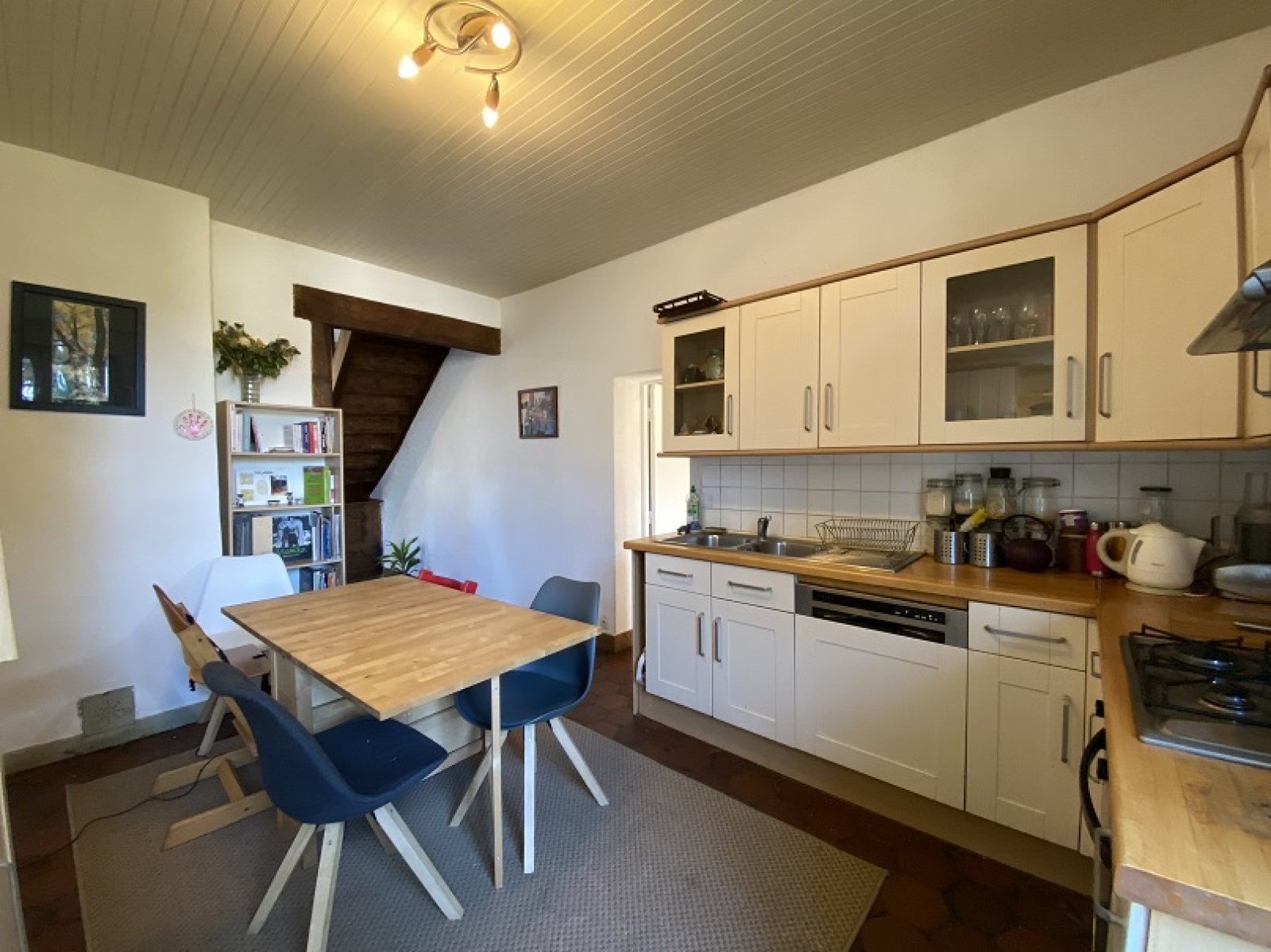 RDC : Séjour avec cheminée, cuisine aménagée et équipée, chambre, salle de bains, buanderie / wc.